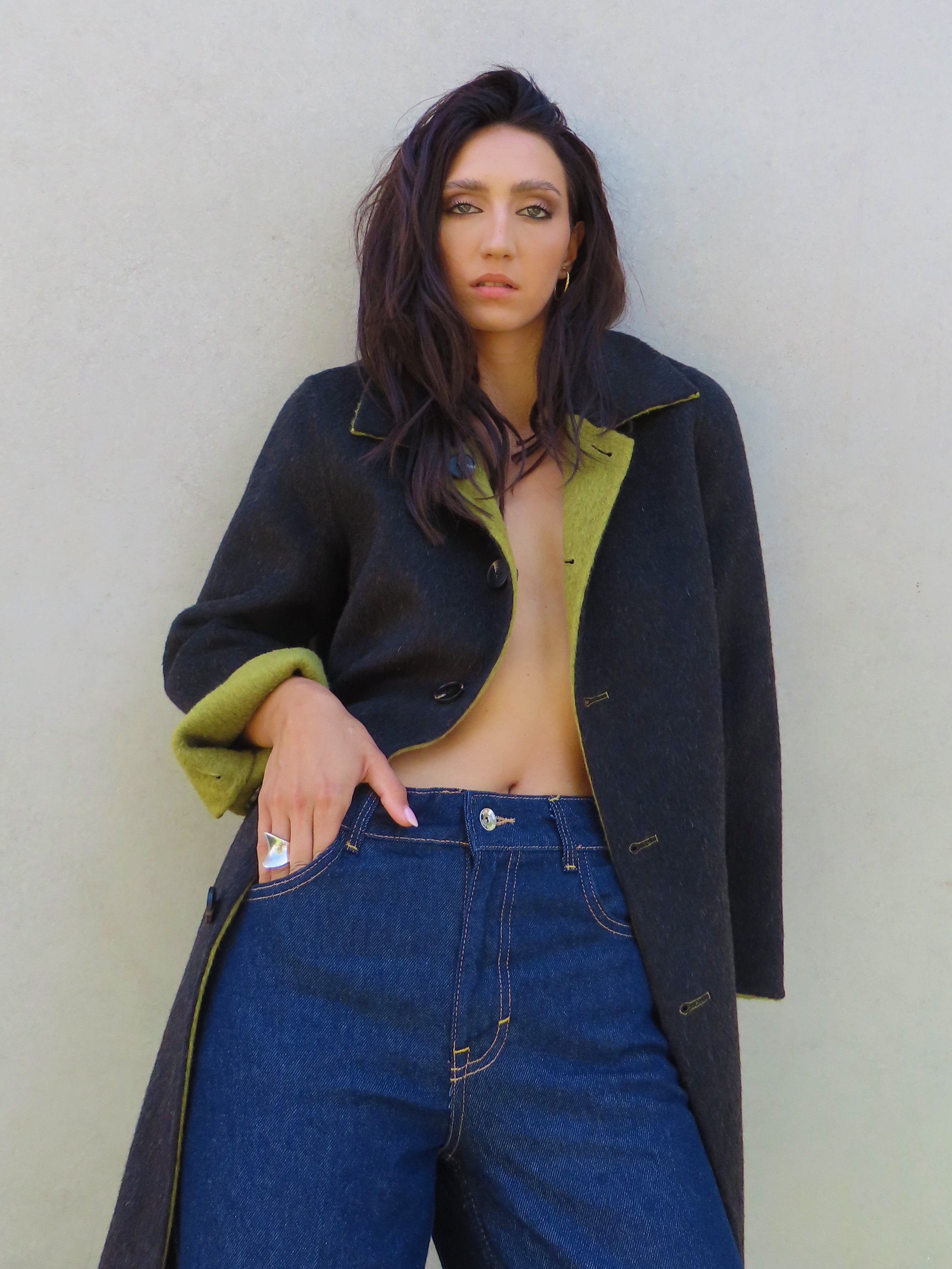 Cartera Piel Amarillo/Turquesa Tirador nudo